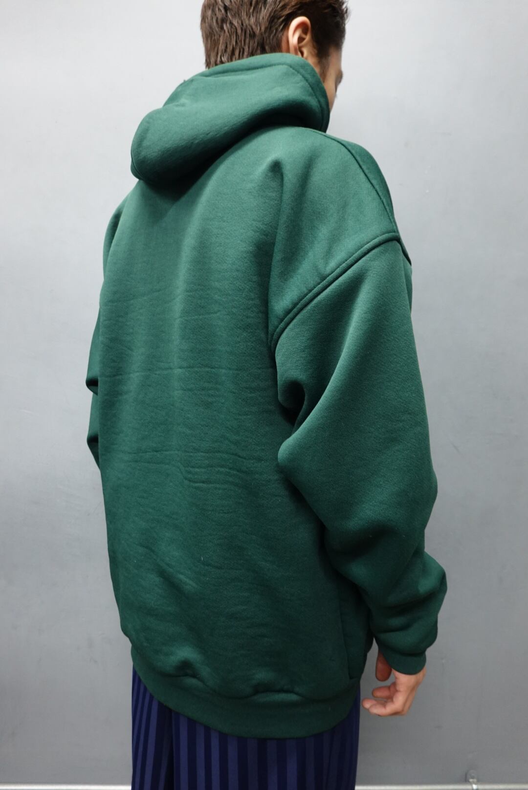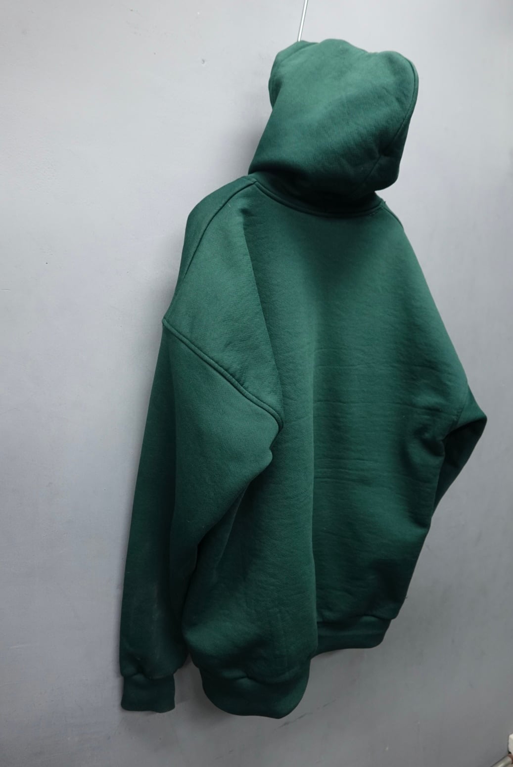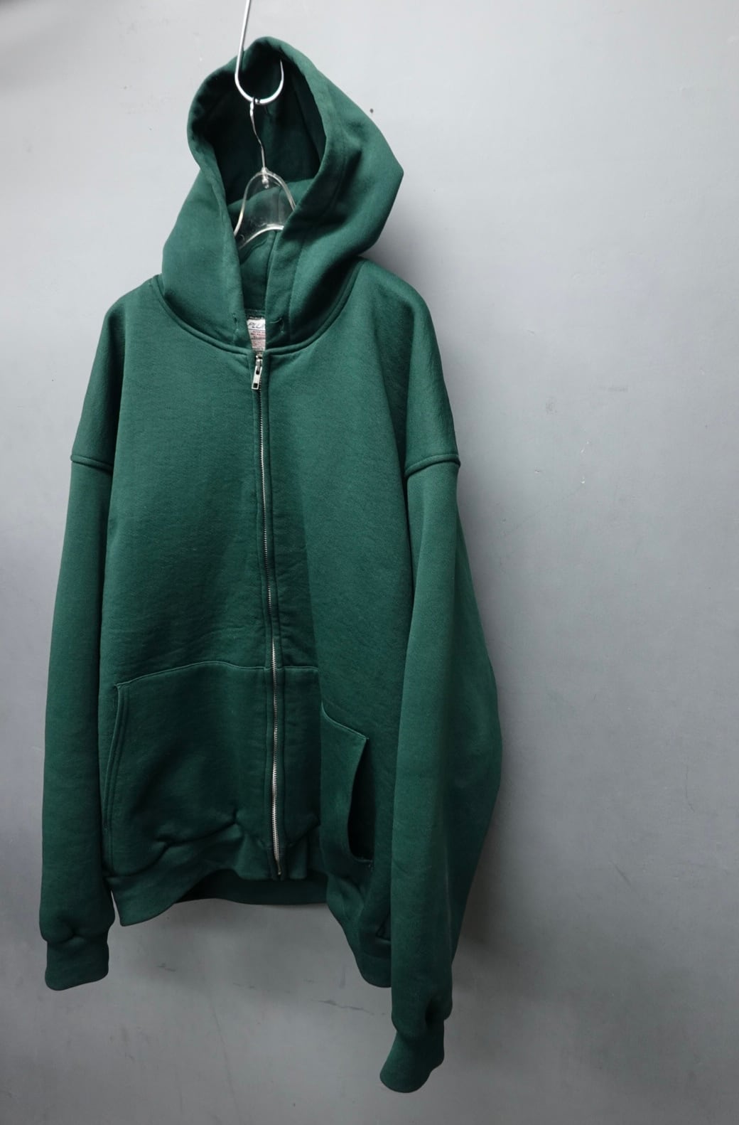 フードがビンビンで濃い緑。